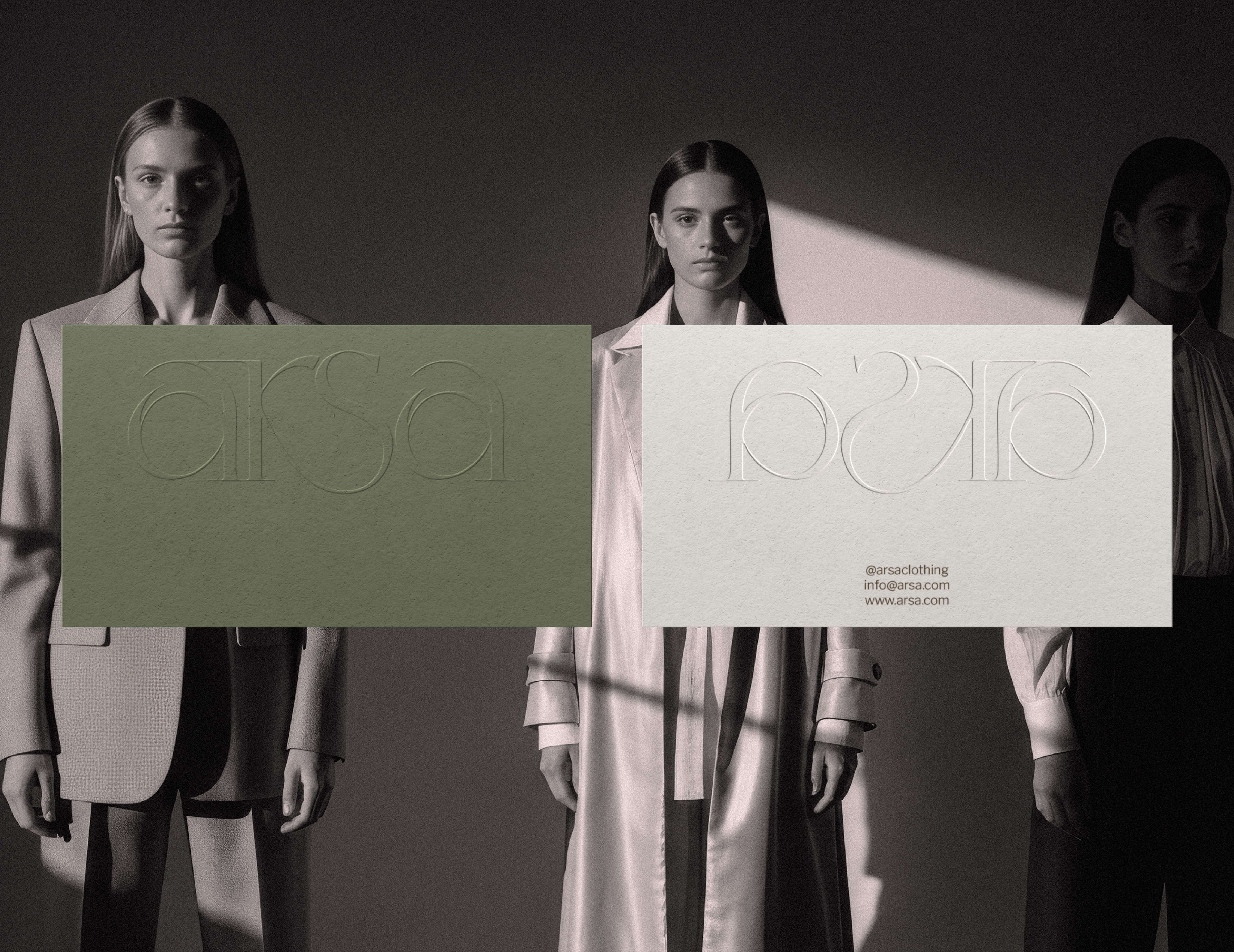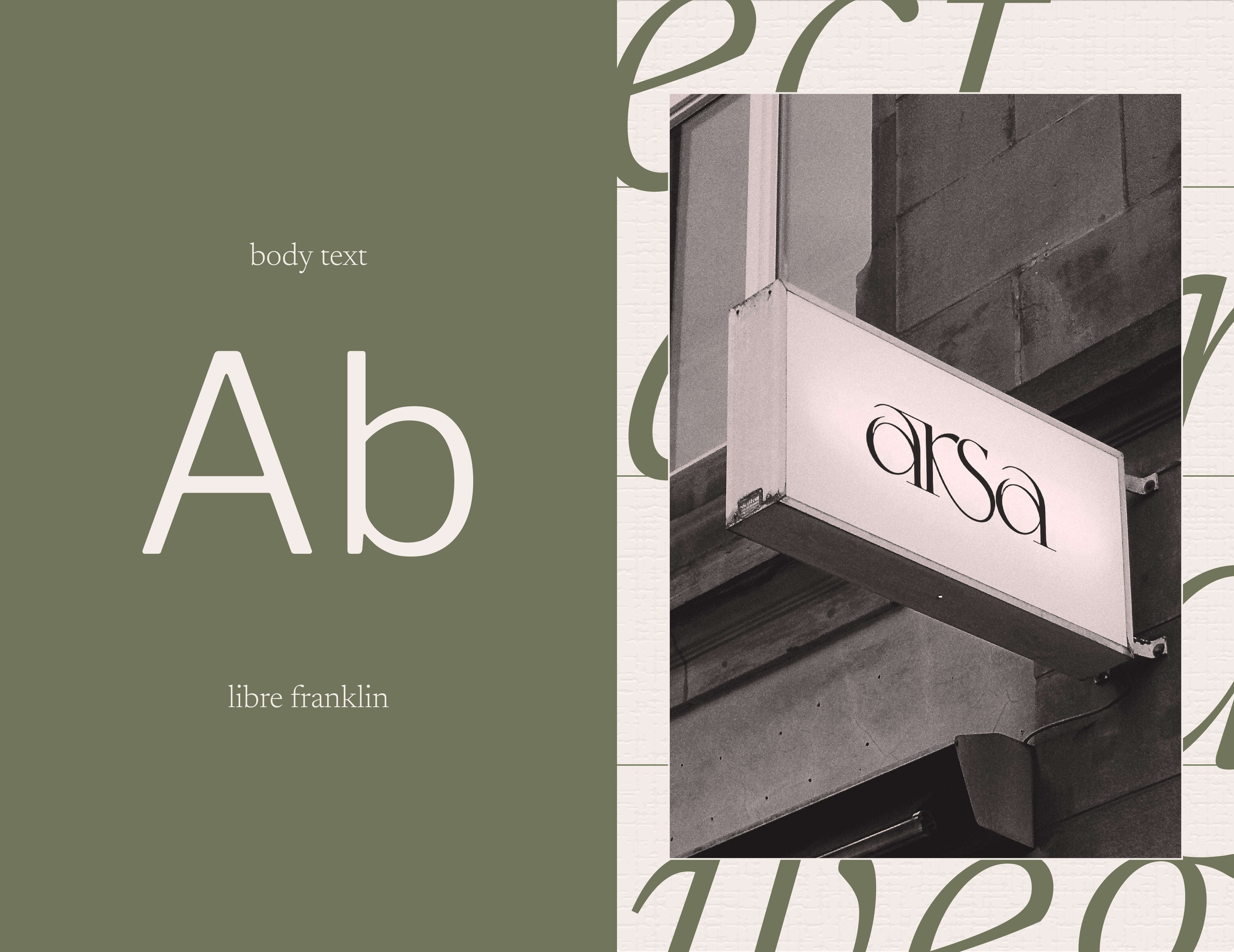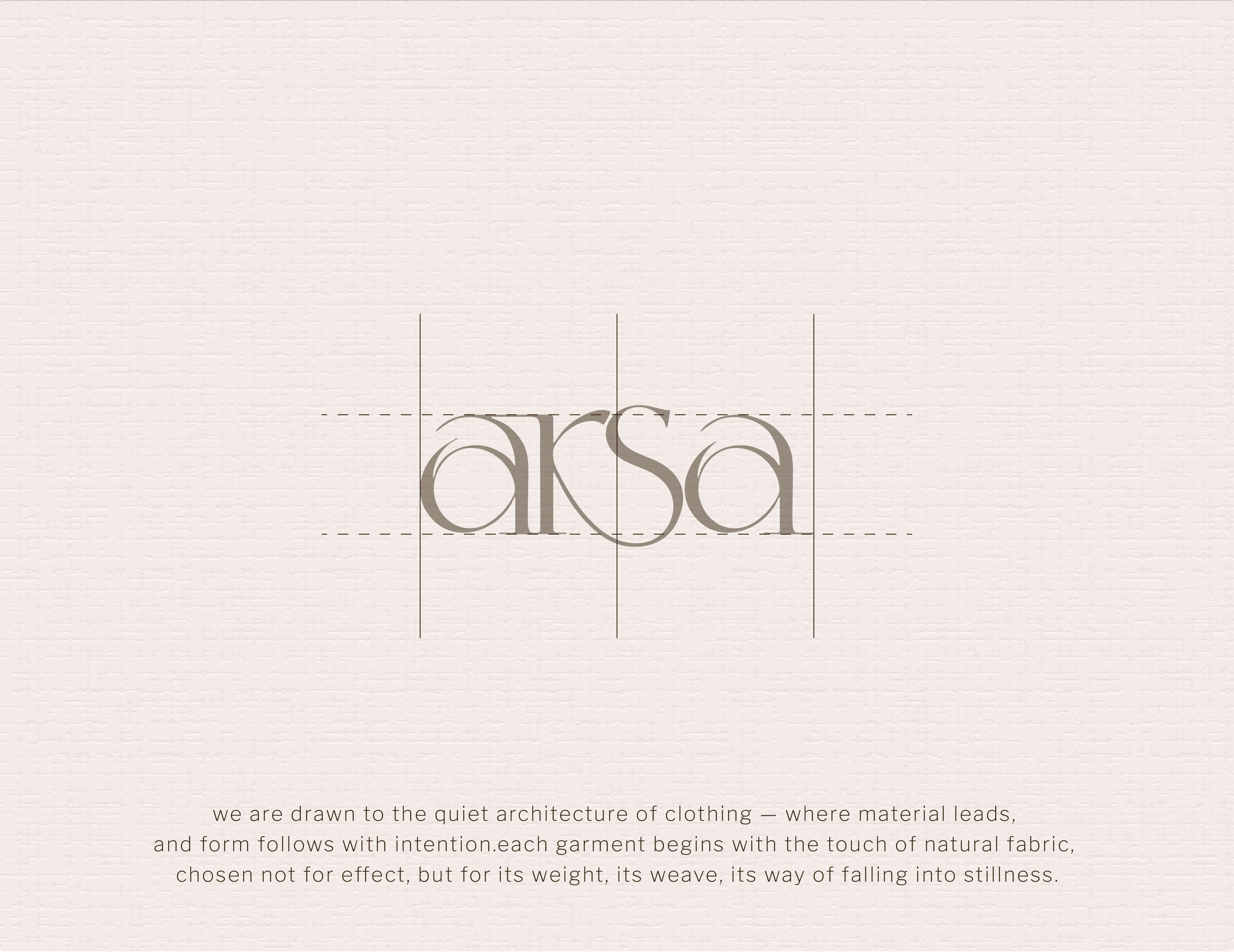 the design solution for arsa began with a complete rejection of spectacle. the logo was drawn with elongated, graceful lines — quiet but present, reflecting balance, timelessness, and clarity. for color, we selected a palette rooted in earth and tactility: muted olive, bistre, and soft alabaster tones that feel both grounded and refined.