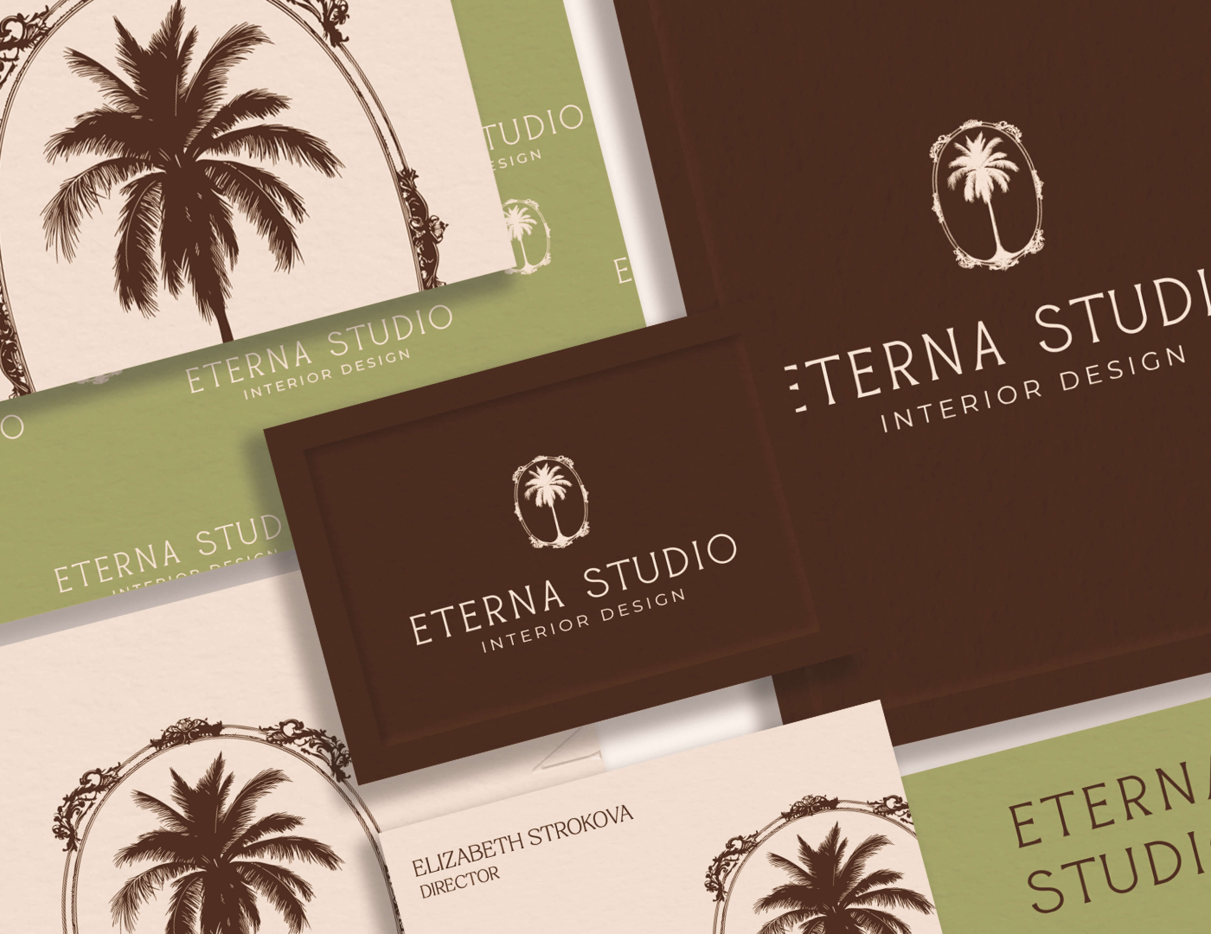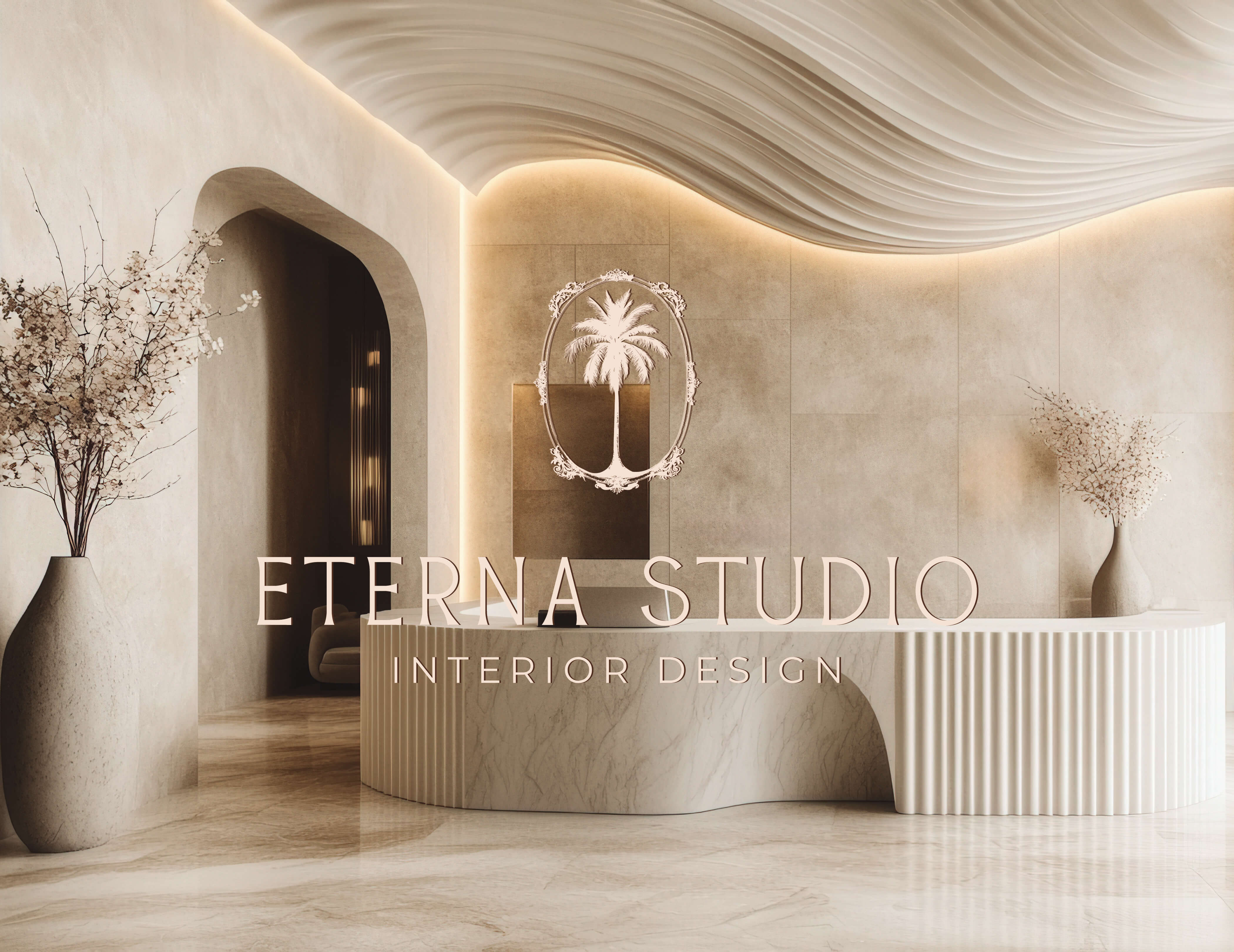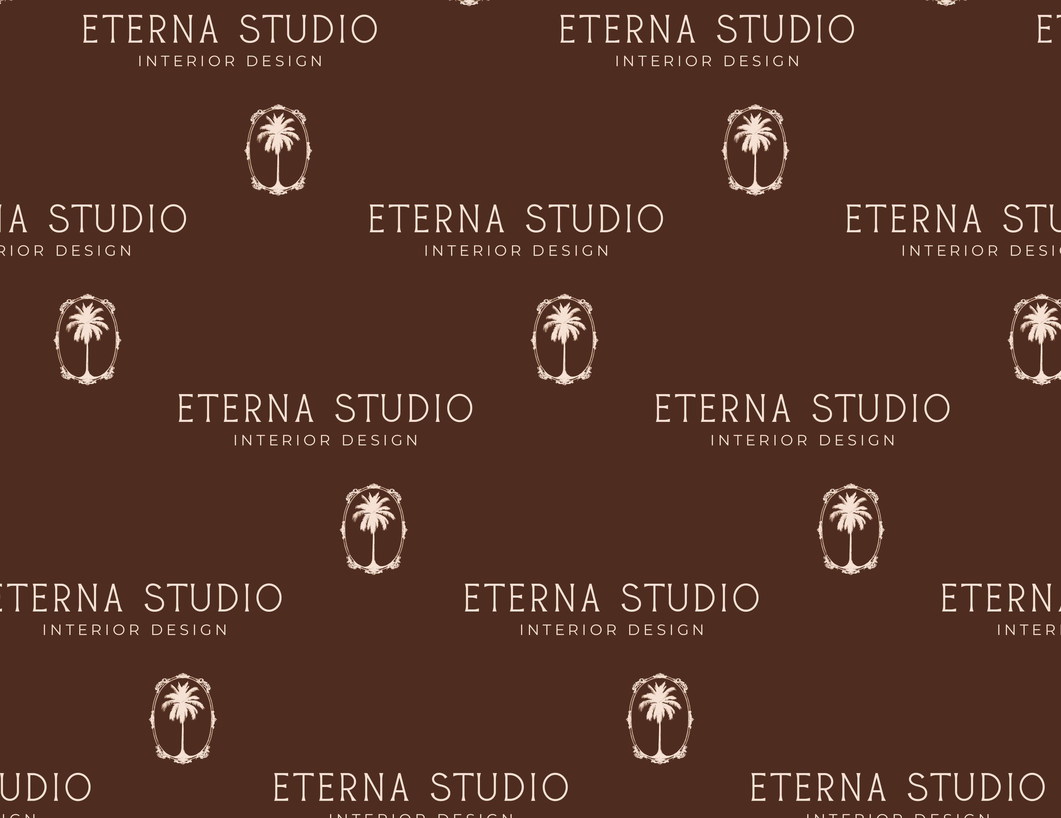 The palm tree motif was chosen for its symbolism of growth, nature, and tranquility, reflecting both Miami’s essence and Eterna Studio’s design philosophy. Combined with a clean serif typeface and an elegant oval frame, the logo strikes a balance between approachability and exclusivity. This timeless design appeals to Eterna Studio’s sophisticated audience, seeking bespoke interiors.